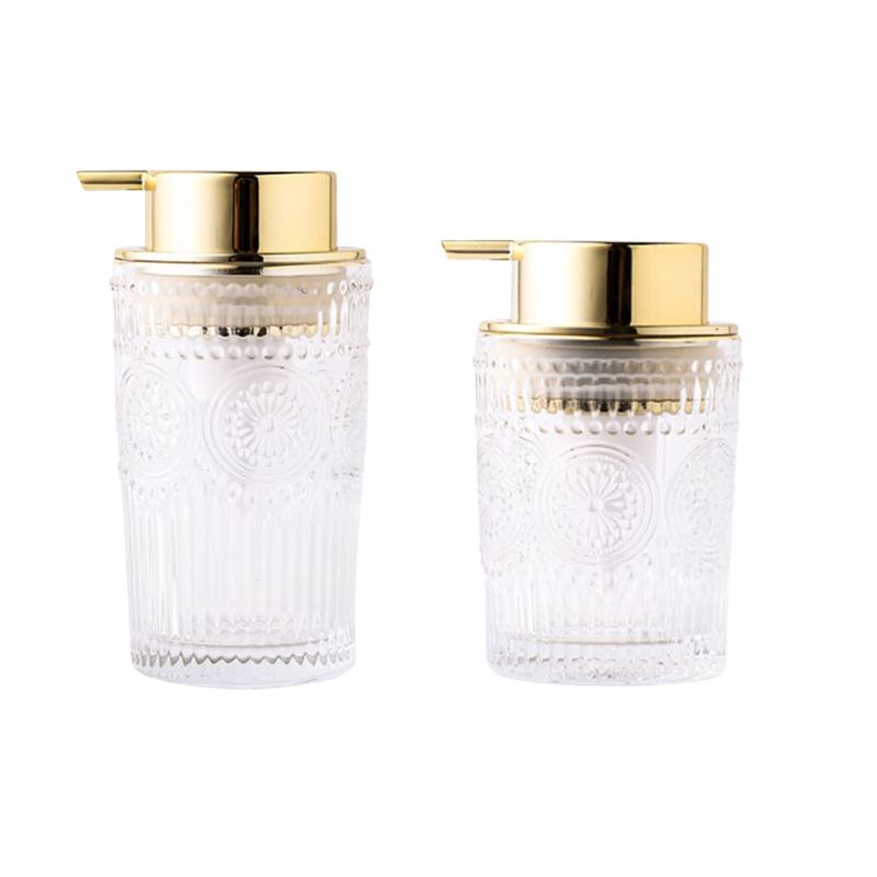 Trasforma la tua routine quotidiana in un'esperienza più piacevole con questo splendido dispenser sapone in vetro dosatore dorato. Non è solo un oggetto funzionale, ma un vero e proprio gioiello per la tua casa.