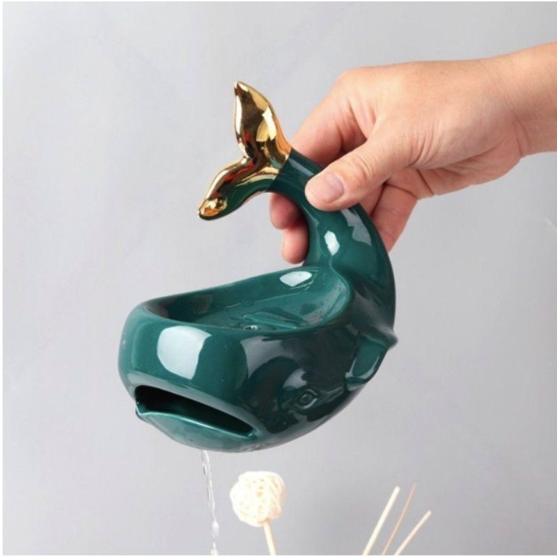 Il design di questo portasapone balena in ceramica design è stato pensato per unire funzionalità ed estetica. La forma sinuosa della balena, con la coda dorata che si erge con grazia, aggiunge un tocco di lusso e raffinatezza. Il colore verde scuro della ceramica, intenso e brillante, richiama le profondità marine, portando un soffio di freschezza nel tuo ambiente. È un pezzo che non passa inosservato, ideale per chi cerca qualcosa di più di un semplice portasapone: un vero e proprio oggetto d'arte che arricchisce l'atmosfera del bagno o della cucina. Preparati a ricevere complimenti da amici e familiari!