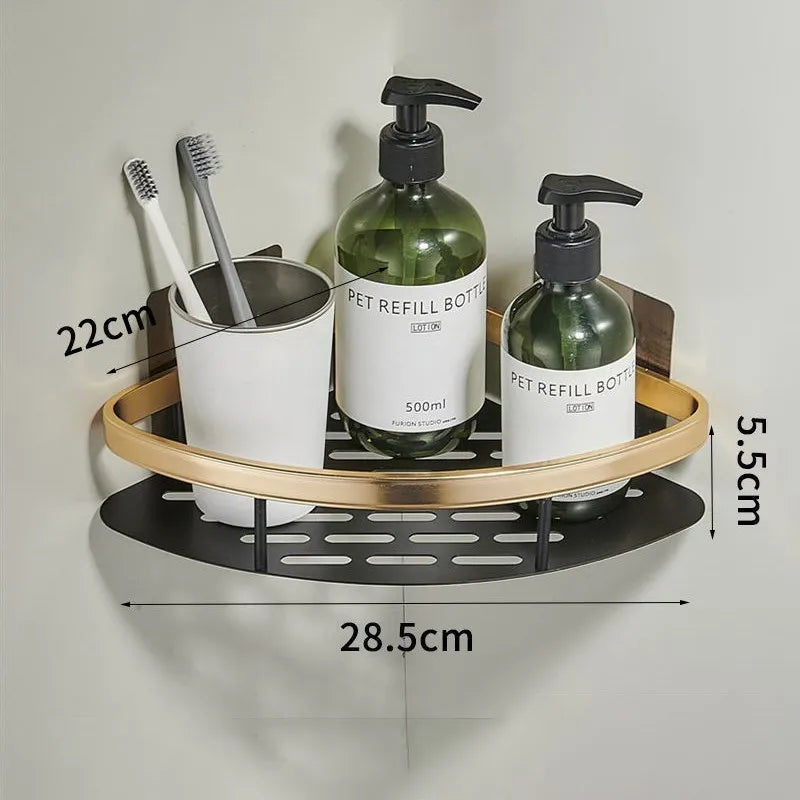 Rendi il tuo bagno più organizzato e stiloso con il Set 2 Mensole Doccia Angolari Nero/Oro.